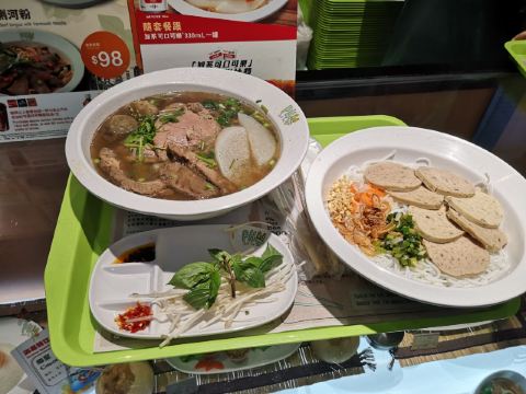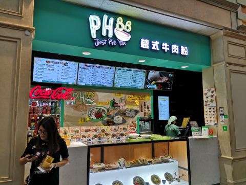 店铺也是威尼斯美食广场的一个热门的店铺,主要就是卖越南的檬粉,从材料上面看来,就相当的正宗,不过价格还是蛮贵的。 店铺是位于美食广场的中庭位置,可以说是最热闹的地方,下单之后大约等十分钟就有东西出来,这边还有越南最出名的生牛肉粉。 点了一份招牌的牛肉粉,另外,再加一份猪扒,加起来大约是100多块钱。 出来的分量还是蛮不错的,一个人吃的话绝对能够吃的比较撑,在里面用料也还算是可以,汤底的话也比较正宗,还有越南那边特有的配菜。 总体来说味道还是相当好的,除了价钱比较贵之外,其他都还算是不错,粉可以选择细粉粗粉。
