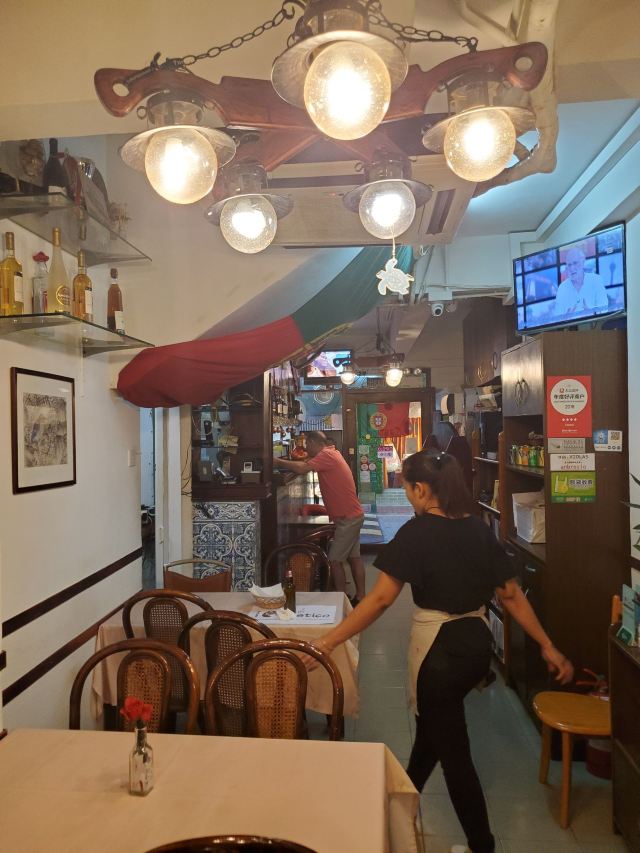 偶然发现这个小小门面,人不多,看起来不错的地方,犹豫了一下,进来了,说是葡国菜,餐单和我在东南亚见过的差不多,价格在100多澳门币左右,简单,干净,舒适的地方点了马介休,其实就是各种不同形状的炸鱼饼