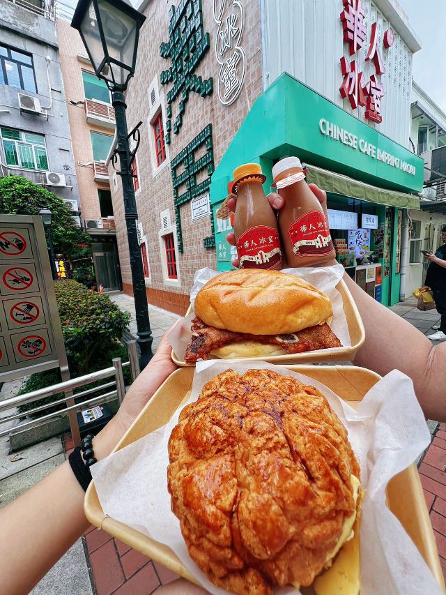 来澳门之前就一直听说过这家有着港澳第一奶茶🧋美誉的冰室茶餐厅,听说很多港澳明星放假都会过来打包带走几件套充充电喔!👀 🧋华人樽仔奶茶(港澳第一的奶茶) 嗦一口就感受到牛奶🥛和红茶☕️融合得很好,茶香浓郁,口感丝滑,而且还是可爱的樽仔包装,喝不完带走也很方便,小小一瓶很可爱☺️ 🍔澳門猪扒包 猪扒的面积也太大了吧,用料真的很良心!肉质滑嫩又不柴而且一口下去还会有爆汁的口感,这个烹饪手艺绝了,简直想炫下一整块! 🥪鱼子酱马介休炒蛋多士 这个做法很特别,我也第一次吃,鱼子酱居然铺在香浓金黄的马介休上,口感酥脆得很,伴着滑嫩的炒蛋吃,一次过满足3️⃣个美食心愿哇 -