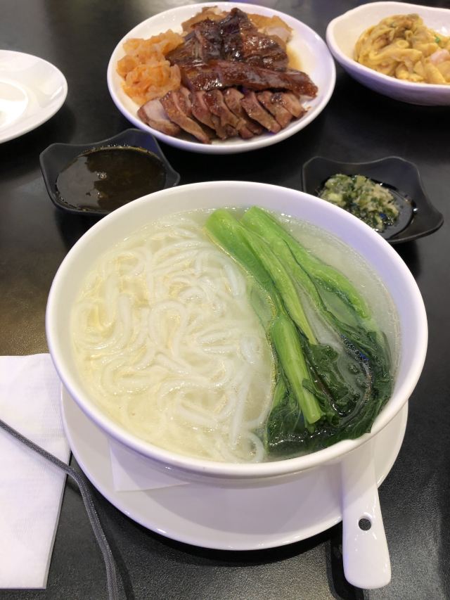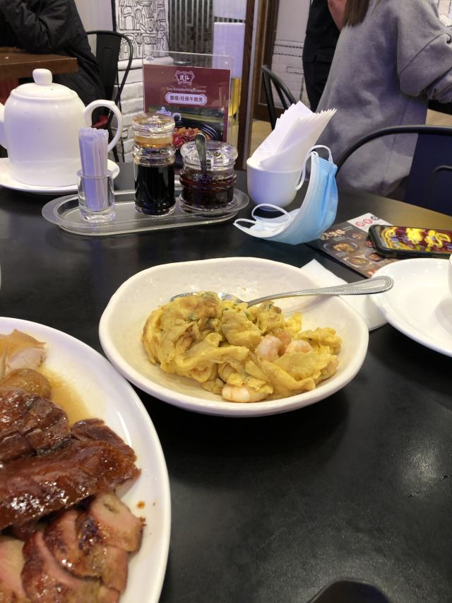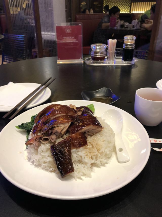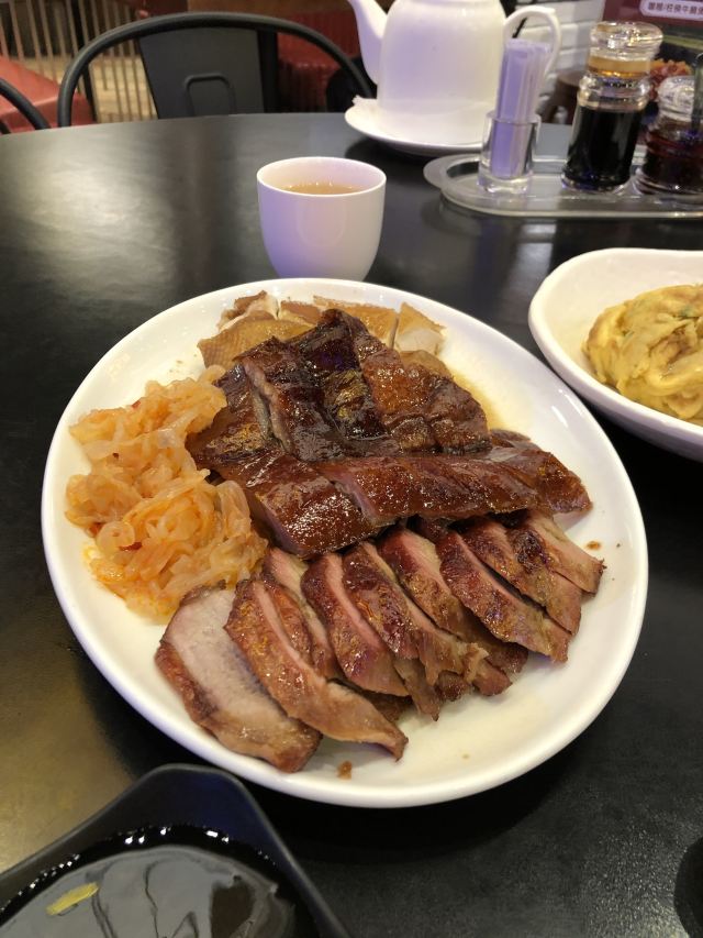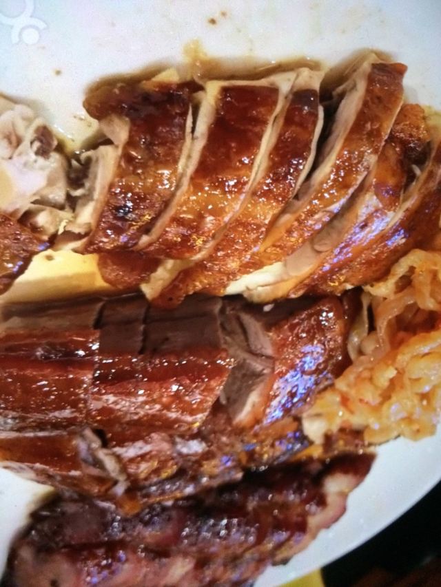 烧鹅有点老,不是很好吃,收服务费,以前在巴黎人美食广场有家做烧腊的烧鹅还比这里好吃,最主要这里一份别人那直接可以买壹只。
