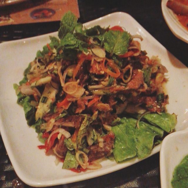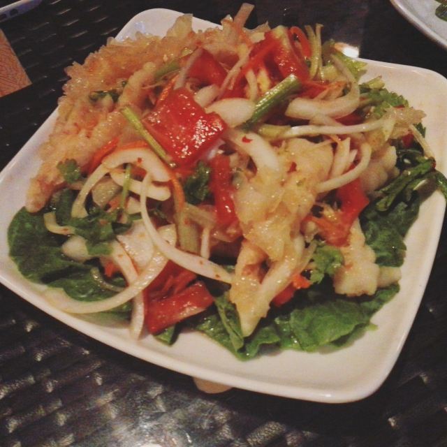 Chang Siam Thai Restaurant【位置】在澳门半岛的十六浦那边有一条横街,看起来不怎么起眼的横街里面,走过一个加油站之后差不多再走三分钟左右就能够看到了,门口还有烧烤的,餐厅本身在二楼,没有接待的人,直接自行乘坐电梯上去就可以了。 【口味】这里的泰国餐挺出名的,菜单非常丰富,基本上能够说得出来的泰国菜在这里都能吃到,人多的话可以吃比较多: #泰式炸虾饼# 这个是这里比较喜欢的,搭配的甜酱可加可不加,虾饼本身的味道就非常不错,吃起来很厚实,一般一人一块就可以了,不然会有点腻味; #泰式腌猪颈肉# 这个一定是很经典的,分量并不多,搭配的猪颈肉的酱汁非常不错,而且味道很正宗,一点点的酸辣味完全开胃; #泰式腌鸡脚# 这个也是必点之一,里面的粉丝很好吃,鸡脚很酸,所以吃起来超级开胃,让吃货忍不住一直吃; #泰式蟹# 这个分量比较大,一般四人以上才建议点,蟹肉本身就很好吃,但是更值得的是酱汁搭配面包,非常美味,完全都不需要点主食了,就是面包配蟹酱就可以了; #绿咖喱鸡# 这一个也不错,咖喱鸡也是每次必点,除了绿咖喱,还可以点黄咖喱、红咖喱,根据个人口味去挑选,咖喱鸡也是因为里面的酱汁而美味,一定要把旁边的面包剪开配着吃,会是完全不同的口感。 【环境】这里灯光比较暗,但是一定要提前订位置,不然walk in很难有位置哦,如果人多,可以选择靠窗边的那一张长桌子(10人左右),对面就是珠海的湾仔,日落时分来这还可以欣赏到美景。 【服务】态度都很友善的,服务也很好吃,到晚上8点会有驻唱歌手自弹自唱,一般都是比较抒情的歌曲,很喜欢这里的“right here waiting”和“nothing''s gonna change my love for you”,非常动听的情歌。 【价格】一般人均120+mop,可以吃得非常饱,东西很不错,如果喜欢吃泰国菜这里是和朋友聚餐的好地方。