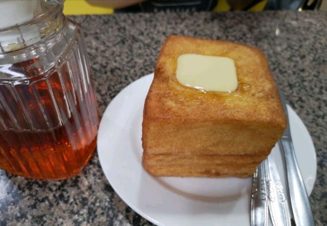 店铺看似普通,但是这里的美食却总能让人流连忘返,许多人为猪扒包和厚多士而来。这家的多士比正常的要厚出3倍之多,外层面包被煎的金黄酥脆,里面包裹着满满的半融的花生酱,吃进嘴里超级满足,是他家名副其实的人气商品。此外,他家的猪扒包也做得非常地道,值得尝试。