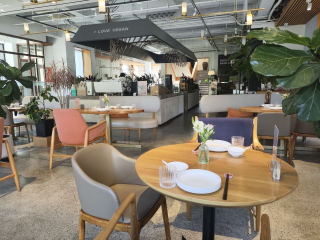 桃子妖妖妖素妍、柠澜、荷恬,作为同一个老板开的三家不同名的素食餐厅,我已挨个体验一遍了,不知道集齐这个成就能不能召唤神龙,但三家店我都很喜欢。 三家店的共同点,都是素食餐厅,布置都很漂亮,拍照都很出片,服务和食物都很好,以我的标准来看,都可以打满分,都用仙人掌泡水喝,桌上都摆有漂亮的鲜花。不同点一是环境,素妍开在百年城二楼,荷恬开在富国街停车场,柠澜开在城市水上运动中心,选址各不相同;二是菜品,有些共同点,能让你轻易地认识到这三家名字关联度不高的店是一个系列的,但菜品真的是各有侧重、各有特点,不雷同,就很难得。 荷恬开在富国街地铁站B口出来左侧的停车场里,蛮大的一座单体建筑,很阔气,门外的栏杆上爬满了鲜花,娇艳欲滴。进门就有服务员热情礼貌地接待,然后选了一个靠窗的位置坐下来,点了最爱的云朵舒芙蕾和一杯冰美式。 自从在素妍吃了他家的云朵舒芙蕾以后,就彻底迷上了这个神奇的甜品。用一个大大的杯子装上来,外表看起来像无水蛋糕一样硬硬的,布满气孔,但是当你突破了微硬的外表,里边的芯真的是DuangDuang的,滑嫩香甜,Q感十足,好吃。 冰美式并没有用咖啡杯装,而是用一个细高的小壶盛上来,配上Q版的小杯子,喝起来很有仪式感。咖啡豆的品质也很不错,值得一喝。 食物好,店里的氛围也好,下午店里没有什么客人,大家坐的都保持着一定的距离,吃吃喝喝,听听音乐,看看花,翻翻书,简直是太滋养人了。我坐的位置是窗边,透过窗户看出去是一片空地,有花有草有树,还有在外边玩耍的小朋友。屋里咖啡的香气和舒缓的音乐弥漫开来,屋外不冷不热,岁月不急不躁,玩耍的小朋友偶尔喊两声,时光就这样静静地流淌,真美好,真希望时光能永远停留在这一刻。 有时候想想,住在市内的朋友们真是幸福,身边有这么多好的去处。如果我以后搬到市内住的话,下午一定要约朋友们在这家店,慢慢地消磨时光。 很美好的一家店,推荐给各位朋友们。