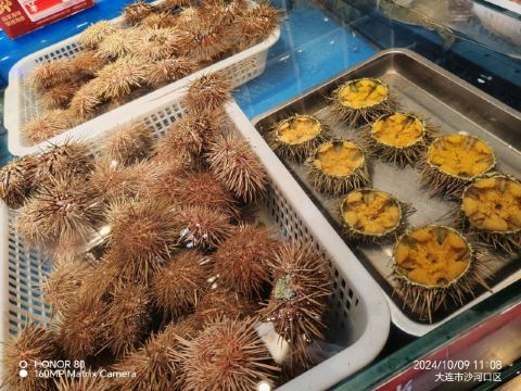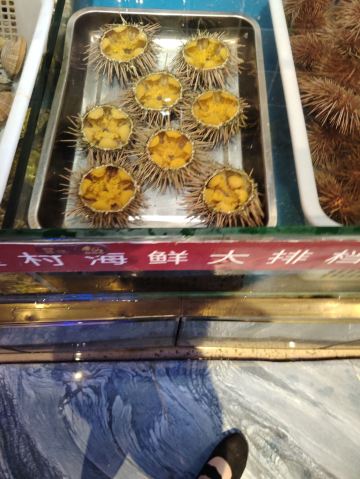 小平岛黄金海胆生吃,蒜蓉蒸獐子岛夏夷贝,盐烤三倍体生蚝,金米海参,渔村煎刀鱼,招牌干炸虾仁,海味全家福,大连三鲜焖子,东北锅包肉,石锅海胆豆腐,大头菜爆螺片,大连烤鲍鱼,招牌波士顿龙虾蛋黄焗,非遗熏酱猪手,香煎渤海湾刀鱼,元宝大茄盒,焖子