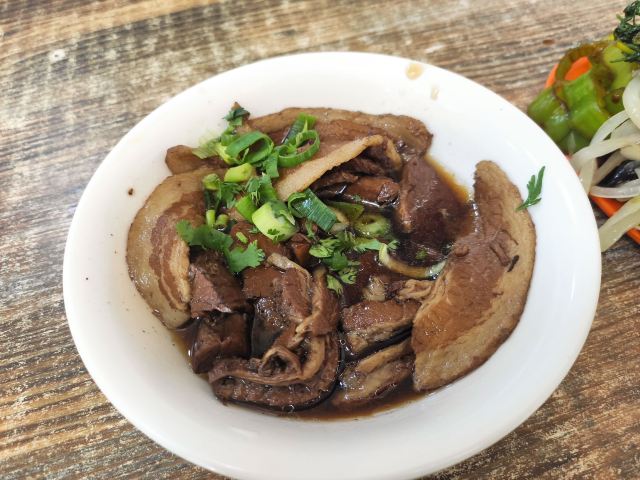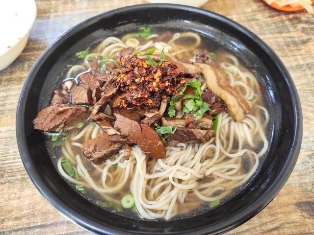 这家面馆上次来吃了一次清汤拉面,感觉味道很一般,不如评星那么高,本着对一家饭店负责任的态度又来了一次,这次评星提高了一颗星,应该是比较接近真实水平的,但应该是略高于真实水平一些。 为了确保对饭店公平,我这回来在清汤拉面的基础上,又点了一份小菜,一份卤肉,综合评价一下。 卤肉很不错,喷香,空口吃略微有点儿咸,但还是很好吃的,空口吃了几块以后,把剩下的卤肉连汤都拌进了面条里,瞬间变成了一碗大肉面。 大肉面拌上辣椒油,吃起来很过瘾,配上小菜解解腻,这回口感丰富多了,好感度也上来了,果断四颗星,但实际上,感觉应该到不了四颗星,四颗星有一定的感情分在里边。 我认为,真正好的面店,应该是有面味的,可能这个简单的要求,在河南、山西这些面食大省以外的地方,就是很难实现吧,接受现实吧,对一般人来说,也算是个不错的去处了。