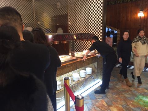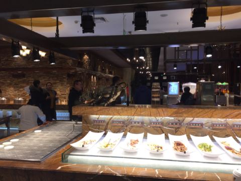 在大连已经是很好的一家自助餐厅了,菜品很丰富,不需要自己烤,方便,挨着船厂,餐厅的环境还可以,就是人多的时候,真是人挤人啊,有些现做的菜品需要排队很久。总体感觉还是很好的,经常光顾。