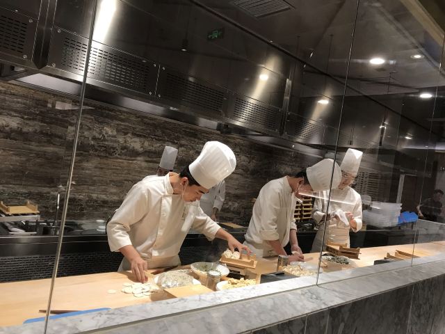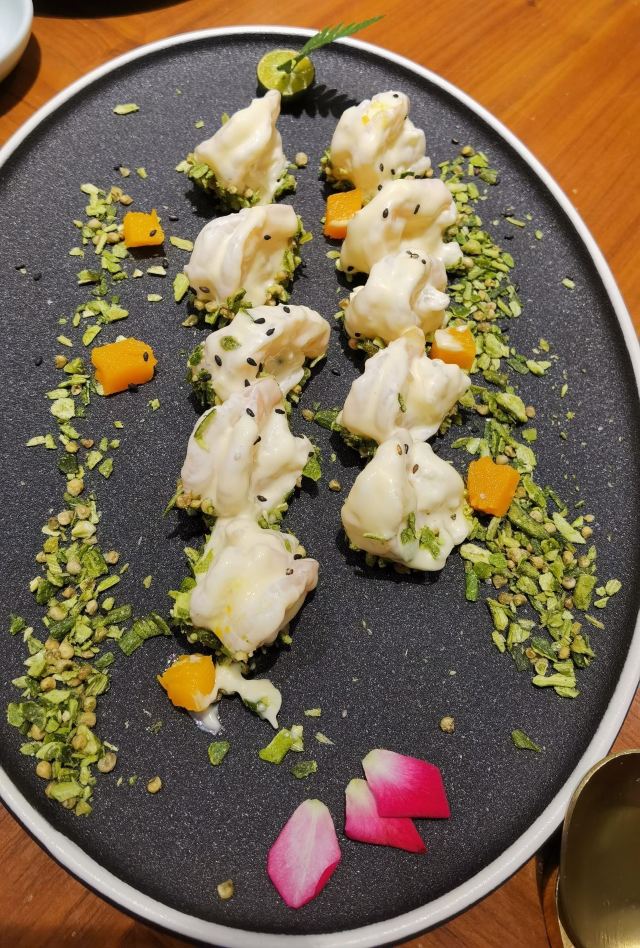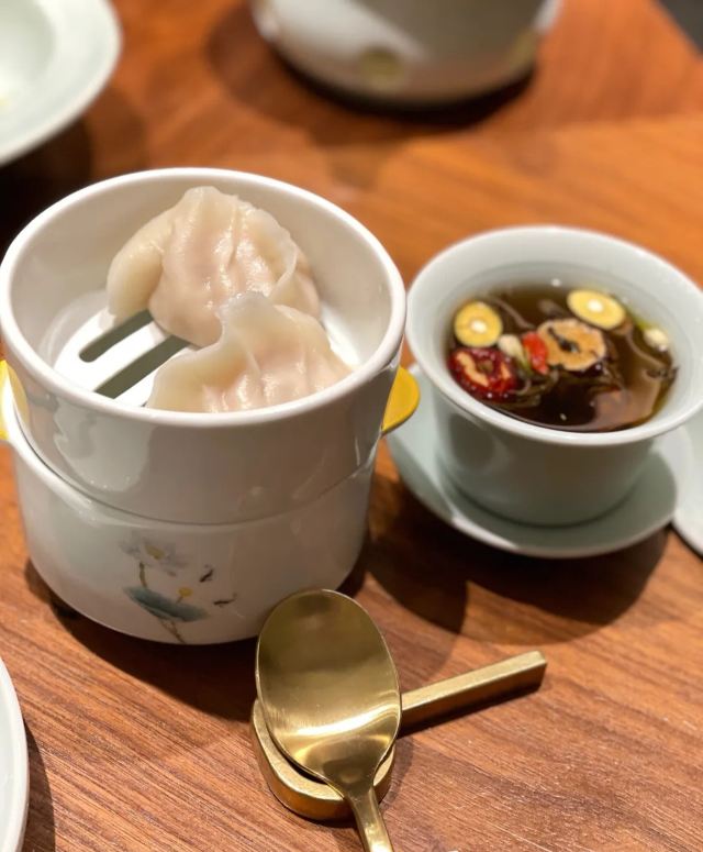 馨斐最有心海胆水饺🥟和海肠水饺🥟是大连最有特色的饺子了,吃海胆水饺当然要去喜鼎喽,这次选的是东港店。 ⛳️位置|在靠近威尼斯水城的边上,侧面是正对着兰巴赫的。餐厅门前有停车的区域,停车方便。 🍃环境|比较简约大方的风格,有包间,包间环境也不错。 👩🏻🍳服务|喜鼎的服务品质一直很棒,从预定到餐毕,每个环节都很贴心。 1⃣️餐厅的包间没有最低消费,和大厅一样,每位10元茶位费。 2⃣️餐厅有宝宝椅,预定时提前说,店里都会安排好。 3⃣️自带的宝宝辅食店内可以帮忙加热。 总之,这家店的服务真是品质在线。 🍱餐品|喜鼎的菜分量都不算太大,是属于比较偏精致的菜品吧,味道都不错。 海胆水饺:海胆水饺主打原汁原味吃,不要蘸酱料。 牛肉蒸饺:馅料比较足,一只也比较大。 金钩白菜:这个菜的分量相对算蛮大的,很清爽,海米是比较大粒的那种。 奇妙虾球:他家招牌菜之一,我蛮喜欢吃的,甜甜的,摆盘跟以前不同了,秋葵碎摆在盘子边上,整体更好看了。 冰汁南瓜:甜甜的一道菜,女孩子都爱吃的那种,虽然甜,但是也蛮爽口的。 虾肉茄盒:很喜欢的一道菜,里边的馅料是虾仁的,虾仁分量足,跟以往的茄盒不同,一点也不油腻,很好吃。 砂锅凤爪:这是第一次点的菜,因为喜欢吃的黑蒜小排没有了才点的,竟然意外的好吃,鸡爪很软烂,里边的花生🥜也很好吃,汤汁略微咸,但还是很推荐这个菜。 水晶海胆:就是海胆冻,也是凉菜,会配一碟酱料,也还不错。