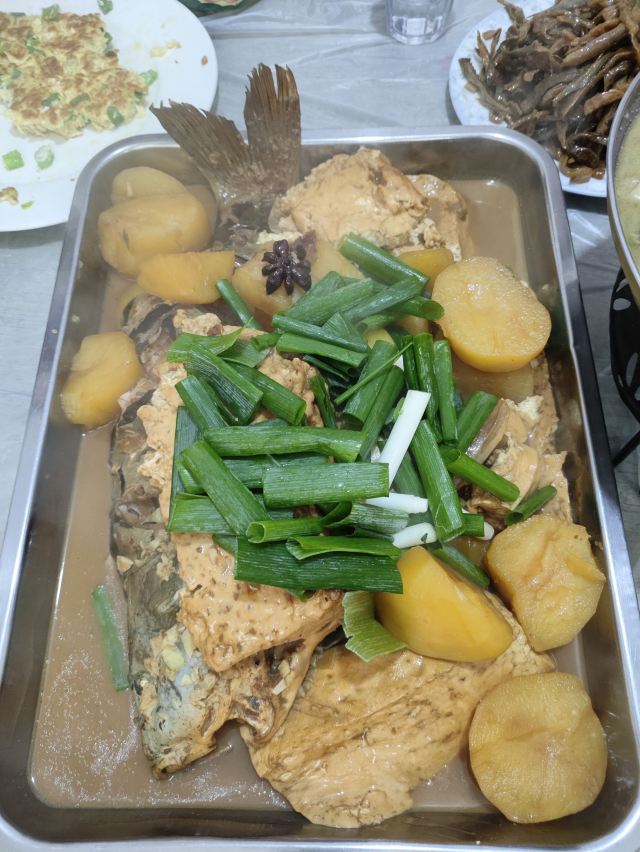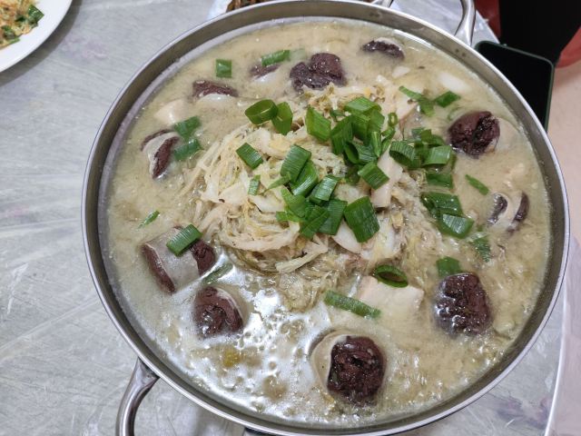 桃子妖妖妖大黑山老太太农家炖菜馆,店名叫老太太,现在已经是一位年轻的小美女在打理啦。 他家开在朝阳寺停车场内,所以停车超级方便,到店用餐免停车费,但要在结账时跟小美女要下停车票,并且从入口出去,自己不说,自行付费可就退不了了,毕竟停车场不是自己家开的。 他家我收藏了很多年了,一般都是去大黑山爬山烧香的客人在这吃,像我这样大老远专程跑来吃的应该不多,工作日的中午,就我们一桌客人,得以专享一段难得的清静悠闲时光。 这家店是老店了,主营农家菜,品种不多,小鸡炖蘑菇、炖鱼、芸豆土豆炖大骨头、杀猪菜、炸茄盒、炸河虾、笨鸡蛋、蘸酱菜、蒸萝卜瓜、皮冻,主食饼子米饭,没了。品种少的好处,就是天天做这几样,做这么多年,肯定差不了,不好的地方就是人不能太多,可点的菜比较单一,像我们这样四五个人就正好,可以坐在炕上吃,随便点几个菜就是一大桌子。 点了鲤鱼土豆炖豆腐、杀猪菜、炸茄盒、笨鸡蛋、蒸萝卜瓜,几个饼子,坐在热乎乎的炕上,吃的心满意足。酸菜血肠五花肉,酸菜很酸,五花肉有点儿肥,小酒精块咕嘟着感觉很好。大锅炖鱼和土豆豆腐,柴火锅炖出来的就是不一样,土豆豆腐软烂,鱼一点儿都不腥,很有味道。笨鸡蛋是加了葱花摊的鸡蛋饼的做法,很香,第一个上的,很快就光盘了。茄盒是老式做法,里边是韭菜肉馅的。萝卜瓜蒸的很透,油汪汪的,和刚出锅的饼子一起吃,绝配。一大桌农家菜,吃的很舒服,就是略油,酸菜锅有点儿过于酸了,五花肉有点儿过于肥了,除此以外,都挺好。 景区门口能有这样的菜馆,真心不错,一大家子人用心经营的老店,值四颗星。小美女的服务让我很舒服,加颗星支持一下。 友情提示:如果有赶时间的朋友,提前加老板微信预定,到了就可以开吃,更舒服。