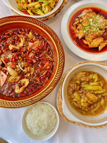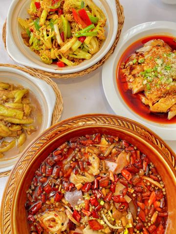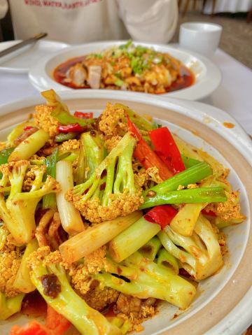 石锅土豆酱鲍鱼,金牌蒜香豆腐,胡萝卜鸡蛋酥饼,石锅牛仔骨,炝拌脆肚丝,培根鸡蛋酥饼,大芸豆包子,蒸蒜蓉娃娃菜,石锅蚬子烩豆腐,夫妻肺片,潮州芥兰,辣酥虾仁,燕麦海参粥,家燜海参斑,蒜蓉虾夷贝,排骨,蓝莓山药,蚬子,芸豆包子