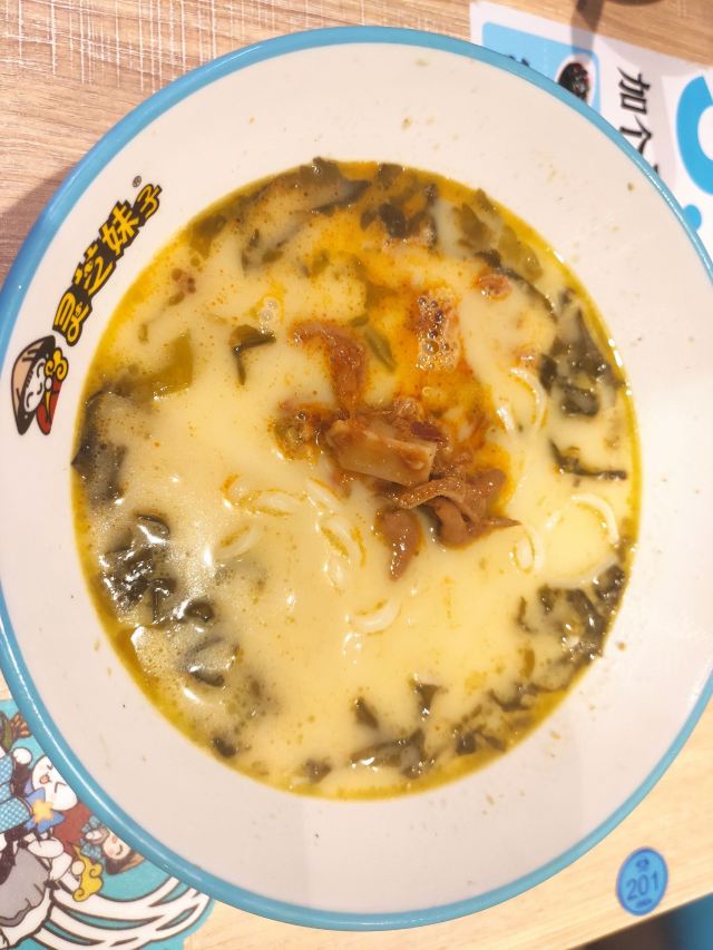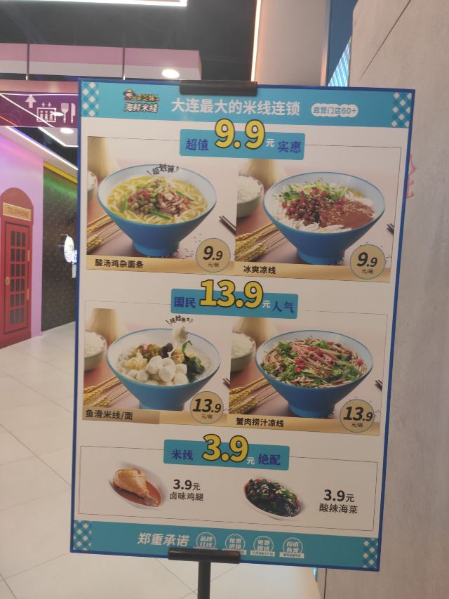 灵芝妹子是大连市著名的连锁品牌,也算是一家老牌米线店了,不过因为自己不是很喜欢吃连锁品牌,所以只是很偶尔吃一次,一晃好几年没来了。 这天在万和汇闲逛,突然发现他家有特价菜,酸汤鸡杂面和冰爽凉线只要九块九一份,酸汤鸡杂面直击我的味蕾,果断来一份尝尝。 进店坐下,扫码点餐,但是他家网络好像不太好,半天也没扫出来,找到前台,要求直接点餐,前台也同意了,很人性化。 几分钟的功夫,面条就上来了,香气扑鼻,令人垂涎欲滴。尝了一口面条,劲道爽弹,口感很好;喝一口汤,味道很正,够酸,够爽,够辣,就是想象中的味道。 吃完面,出了一身透汗,感觉不错。 也有个小缺点,面汤有点儿过咸,扣一颗星。 可以当做一顿合格的工作餐,推荐,下次来尝尝别的。