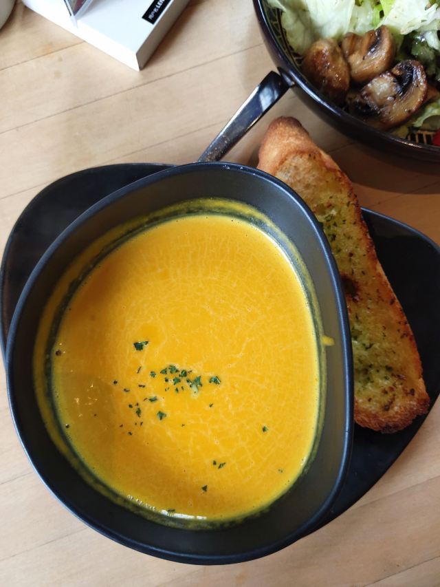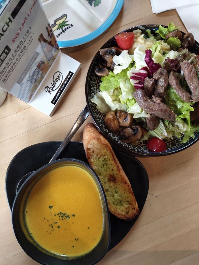 感觉稍微有一点点咸,环境真的很好,坐在外面吃不错