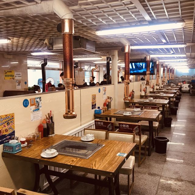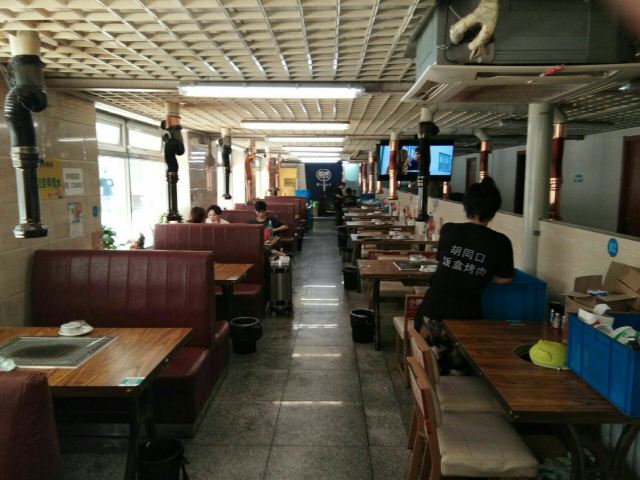 店里的环境很好,客人不少基本没有油烟味。 扫码点餐很方便,烤饼、鸡蛋、花生、肋条店里的特色一定要点的,服务员对自家的特色菜很有信心,下单之后特意问了下“***这几个特色菜都点了么”,确实很好吃。 特色干花生想起了小时候自家做的五香瓜子儿,冬天各种香料煮了花生,装在布袋子里放到暖气上烘几天就变成清香的五香瓜子儿了,嗑起来干脆味道浓郁。这的花生应该也是这样造的,非常好吃。 特色烤饼,饼很玄很软,,配制的酱味道挺丰富的,饼多烤一会儿,外面就变得比较脆里面还是很玄软,服务员给烤的火候掌握得真好。 特色牛肋条、飘香牛肉,肉的品质很好,干料调制的很好吃,跟肉很搭。 特色拌鸭肠,鸭肠脆脆的,拌的超好吃。 饭盒鸡蛋,鸡蛋直接打在饭盒里,烤好之后大量的蒜蓉辣酱拌着吃,适合鸡蛋爱好者。
