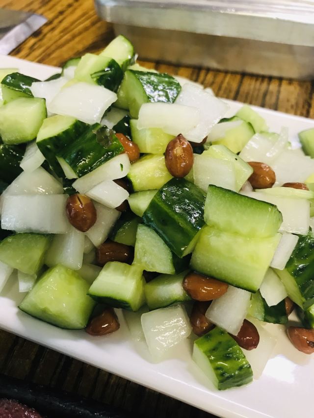 yuccawy店里的环境很好,客人不少基本没有油烟味。 扫码点餐很方便,烤饼、鸡蛋、花生、肋条店里的特色一定要点的,服务员对自家的特色菜很有信心,下单之后特意问了下“***这几个特色菜都点了么”,确实很好吃。 特色干花生想起了小时候自家做的五香瓜子儿,冬天各种香料煮了花生,装在布袋子里放到暖气上烘几天就变成清香的五香瓜子儿了,嗑起来干脆味道浓郁。这的花生应该也是这样造的,非常好吃。 特色烤饼,饼很玄很软,,配制的酱味道挺丰富的,饼多烤一会儿,外面就变得比较脆里面还是很玄软,服务员给烤的火候掌握得真好。 特色牛肋条、飘香牛肉,肉的品质很好,干料调制的很好吃,跟肉很搭。 特色拌鸭肠,鸭肠脆脆的,拌的超好吃。 饭盒鸡蛋,鸡蛋直接打在饭盒里,烤好之后大量的蒜蓉辣酱拌着吃,适合鸡蛋爱好者。