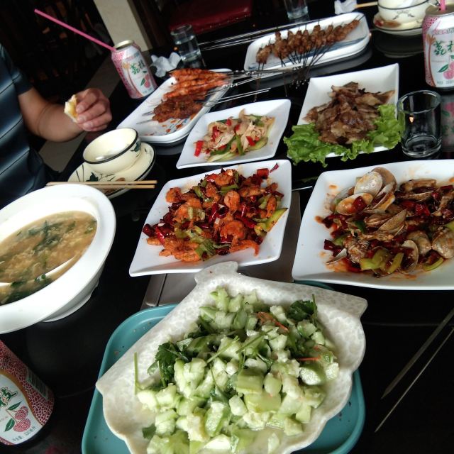 两百块还找两块的4-5人餐,去了三大一小,真是吃都吃不完哈哈。 叫做我们是去旅游的,不然肯定会打包带回家,旅游嘛只能违心的浪费了,大夏天带着食物还要去景点不方便。 烤大虾、烤面包片和热菜小河虾最喜欢吃了,其他没什么出彩,但是大连人民是不吃辣么?要中辣一点点都不辣。