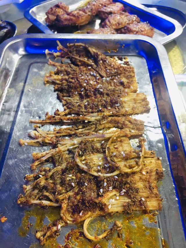 炝拌土豆丝,烤带子,烤鸟贝,烤海肠,烤生蚝,海鲜烧烤,毛肚锅,烤羊肉小串,脱骨凤爪,麻辣小龙虾,炒饼子,东北大拌菜,猪大肠,炒方便面