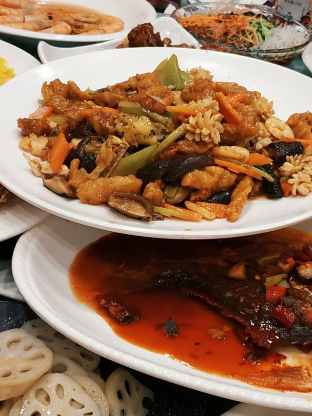 Jinggangshan Restaurant井冈山麗麗餐厅 估计也就住在甘井子周边的人才能知道它在哪里,甘井子消防队正对面。属实本人对甘井子不太熟悉,如果不是长辈们定在了这里,估计我也没啥机会会注意这家饭店。井冈山的名字感觉就展现着长辈们喜欢的峥嵘岁月吧 因为定的是套餐属实并不知道每道菜姓甚名谁,所以也就没办法跟大家详细介绍了。 菜量整体不错,味道一般吧没吃出来他家有啥特色,既不是咱们大连特色的鲜咸口味,也不是川粤沪的味道。算的上家门口的饭馆子吧这年前服务人员都回家过年了,所以服务咱也不强求,上菜速度还是不错的,家里老老少少吃的也挺尽兴。