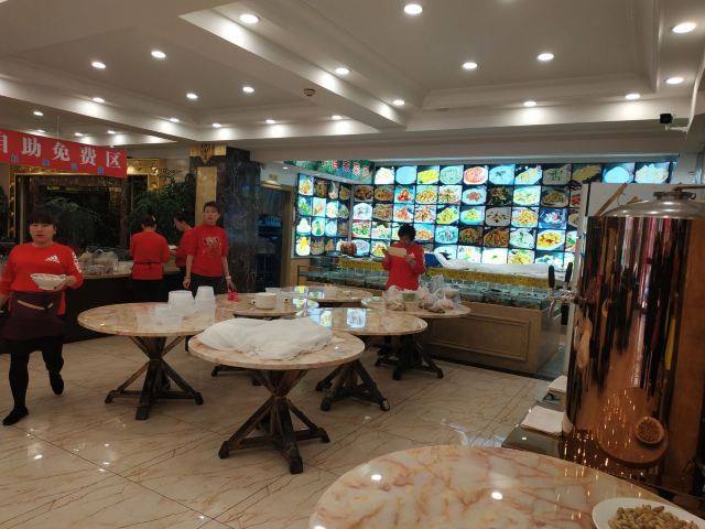 世览这家店在甘井子区,菜品大众口味,挺好的,大厅里面提供免费的粥