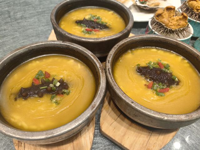 楠姐逛南北吃东西如果不是看了携程推荐真不知道还有这家店,据说这里的老板自家有海,敢这么大张旗鼓宣传,那肯定是靠谱的。 【口味】喜欢吃刺身那就不能错过小平岛海胆,不知道为啥第一次觉得海鲜是甜的。 【口味】金米海参用的是长海县海参价格真不贵,79能接受性价比可以,海参有嚼劲。 【口味】夏夷贝蒜蓉蒸,喜欢粉丝的味道,经过了大贝汤汁的浸泡觉得粉丝比贝好吃,感慨下太嫩了。 【口味】饺子不推荐海肠的,不太喜欢,还是推荐海螺饺子,很清香的感觉 【环境】点菜的地方真的像水族馆。 【服务】挺贴心的,看我家宝宝哭闹,给了小🐢玩具,还是冠军同款,让我吃了一顿好饭,好像带孩子的都有小玩具,我看隔壁桌也给了!