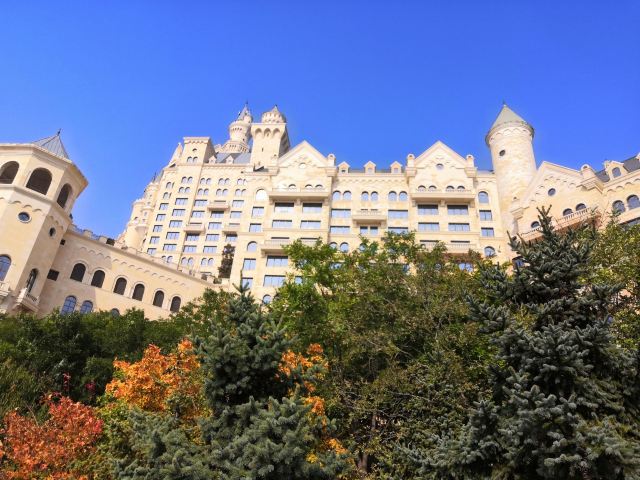 大连一方城堡豪华精选酒店,前身是大连的贝壳博物馆,后来被买下来改造成了这个城堡酒店,位置不用说,坐拥星海湾,近看跨海大桥,景色没的说。当然了,一定要选海景房,不要山景房,山景房没什么卖点,还很贵。她家服务是一流,不过餐食一般。可以改善。