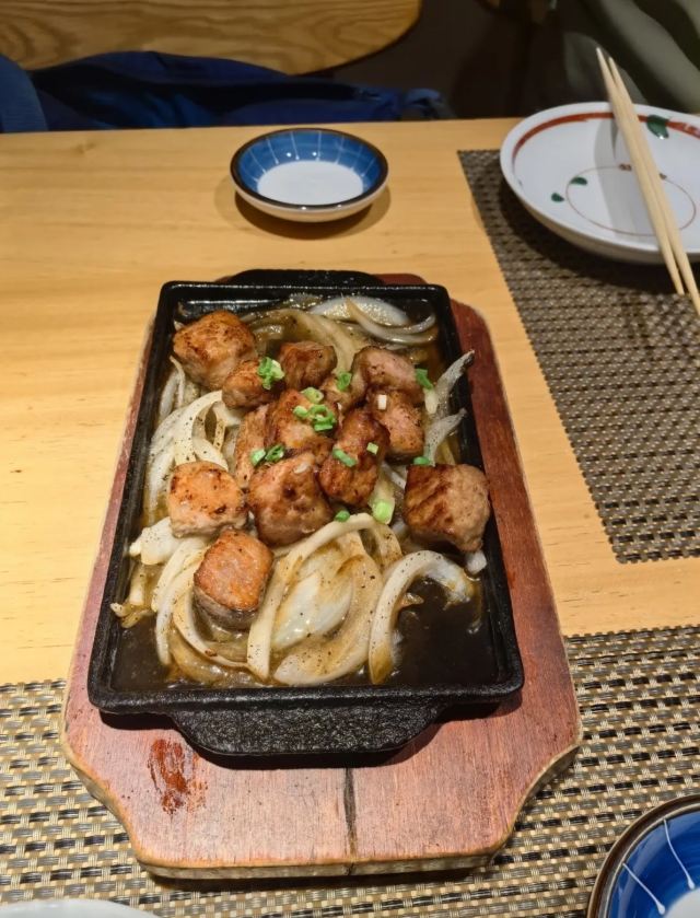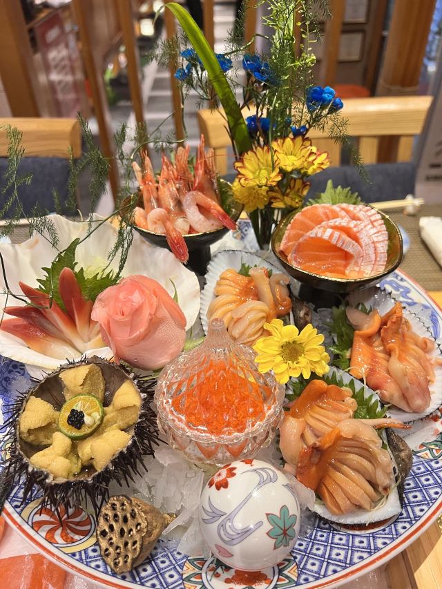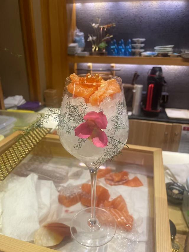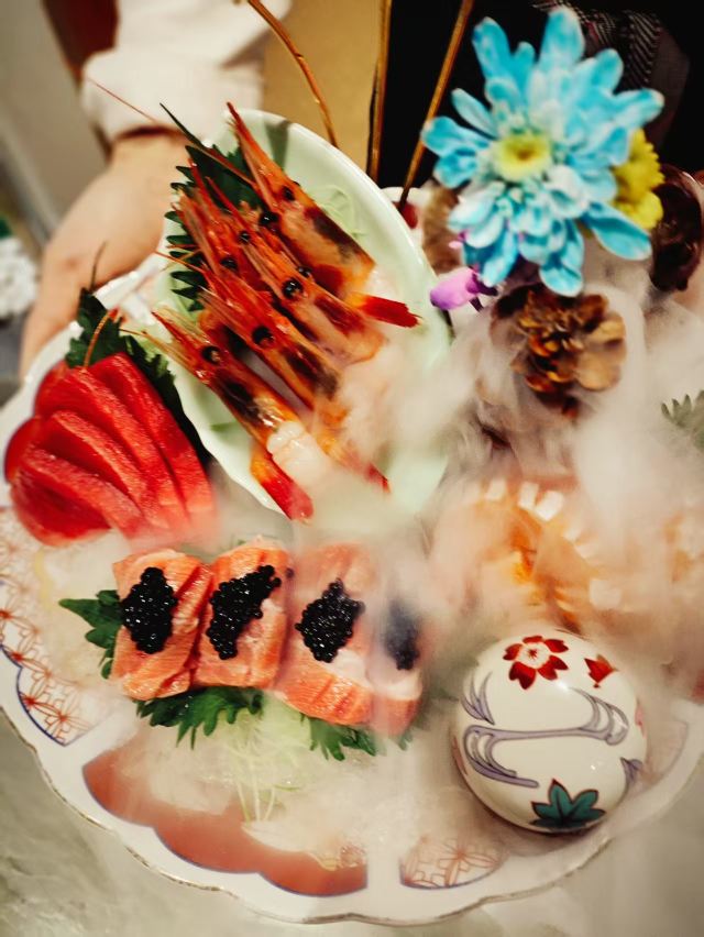 YoYo_8L3S3T4F一进门,就能感受到服务员热情洋溢的笑容,那种真诚的欢迎,瞬间驱散了我一身的疲惫。点菜时,他们耐心又专业,对每道菜品的食材、口味和特色都能详细介绍,还会根据用餐人数给出贴心的点餐建议 。用餐过程中,添水、换骨碟及时又悄无声息,从不让桌上有一丝杂乱。当我对生鱼片拼盘里的鱼种类好奇时,服务员马上过来,细致地讲解每一种鱼的产地、口感区别,服务太周到了,体验感超棒! 这盘生鱼片一上桌,颜值就把我狠狠拿捏住。精致的摆盘,冰块上整齐码放着厚薄均匀的生鱼片,搭配着鲜艳的紫苏叶和柠檬片,光是看着就赏心悦目 。三文鱼纹理清晰,鱼腩部分泛着诱人的油光,入口软糯绵密,油脂在舌尖化开,满是鲜甜;北极贝色泽红润,咬起来脆生生的,带着大海独有的清新;金枪鱼肉质紧实,口感醇厚,越嚼越香。蘸上现磨山葵和酱油,丰富的味道层次在口腔中交织,新鲜得没话说!
