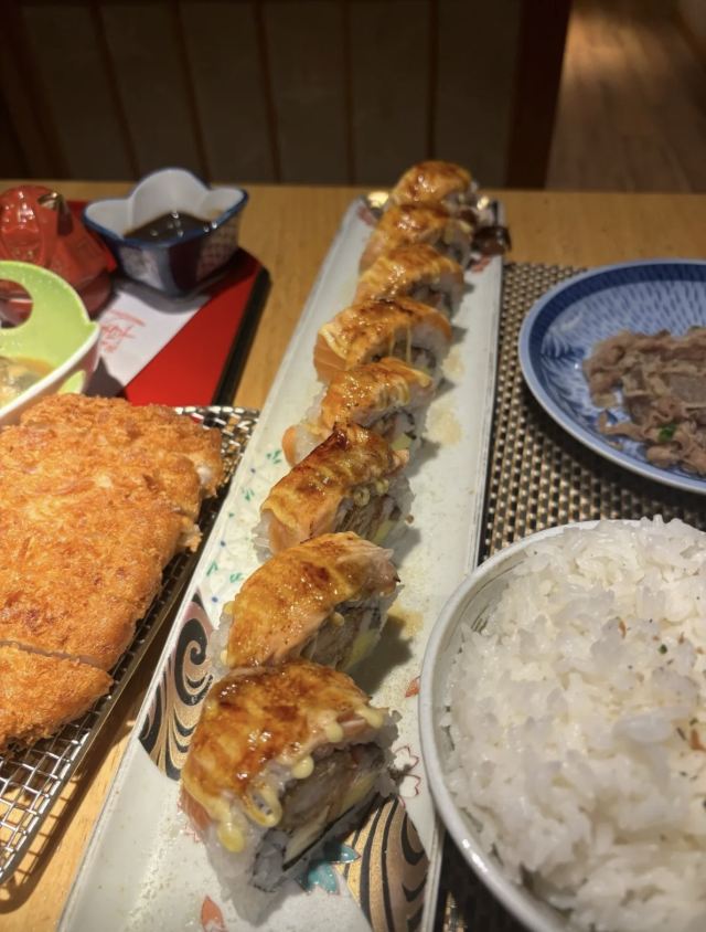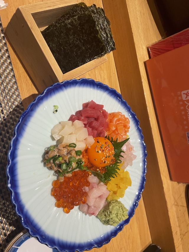 YoYo_8L3S3T4F踏入这家日料店,暖黄色的灯光柔和地洒下,营造出静谧而雅致的氛围,宽敞明亮。 店内的料理台上,摆放着新鲜的食材,色泽鲜艳诱人。一盘精致的炸虾天妇罗被端上桌,金黄酥脆的外皮泛着诱人的光泽,轻轻咬上一口,“咔嚓”一声,虾肉的鲜嫩与外皮的香脆完美融合。爆蛋纳豆也别具特色,嫩滑的鸡蛋包裹着颗粒饱满的纳豆,独特的风味在舌尖散开。 寿司师傅手法娴熟地捏制着一个个小巧玲珑的寿司,新鲜的生鱼片铺在软糯的米饭上,搭配上特制的酱料,每一口都充满了大海的鲜美。还有那盘炸猪排,外酥里嫩,切成均匀的块状,搭配爽口的高丽菜丝,蘸上酸甜的酱汁,丰富的口感令人陶醉。在这样温馨的环境里,品尝着美味的日料,身心都得到了极大的满足 。