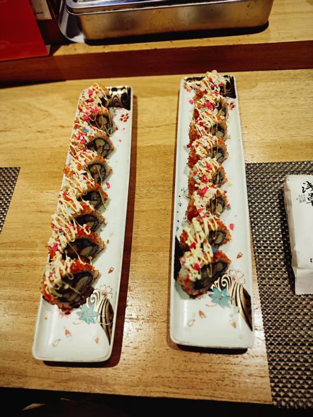YoYo_8L3S3T4F家人们谁懂啊!偶然发现一家超棒的日料店,必须分享给大家! 一进店,就被那满满的日式禅意装修风格拿捏住了。暖黄色的灯光,木质的桌椅、隔断,还有墙上淡雅的浮世绘,每一处细节都透着古朴与宁静,瞬间就让人放松下来。 服务员的服务更是没得说,细心程度堪称一绝!从进门时的热情迎接,到用餐过程中及时添水、更换骨碟,每一个动作都恰到好处,让人感觉特别贴心。 他们家的菜品更是惊艳味蕾!寿司的米饭颗粒饱满,软糯香甜,搭配上新鲜肥美的生鱼片,入口即化,那鲜美的滋味在舌尖上散开,仿佛一场海洋的盛宴。小牛饭的牛肉鲜嫩多汁,炖煮得十分入味,盖在喷香的米饭上,再加上一颗半熟的温泉蛋,搅拌均匀后,每一口都是满满的幸福感。还有炸虾天妇罗,虾身裹着轻薄酥脆的面衣,咬下去“咔嚓”一声,虾肉却鲜嫩弹牙,搭配特制的酱汁,味道简直绝了! 这家日料店真的是各方面都无可挑剔,无论是环境、服务还是菜品,都给我带来了超棒的体验,强烈推荐给各位日料爱好者!#大连浅草