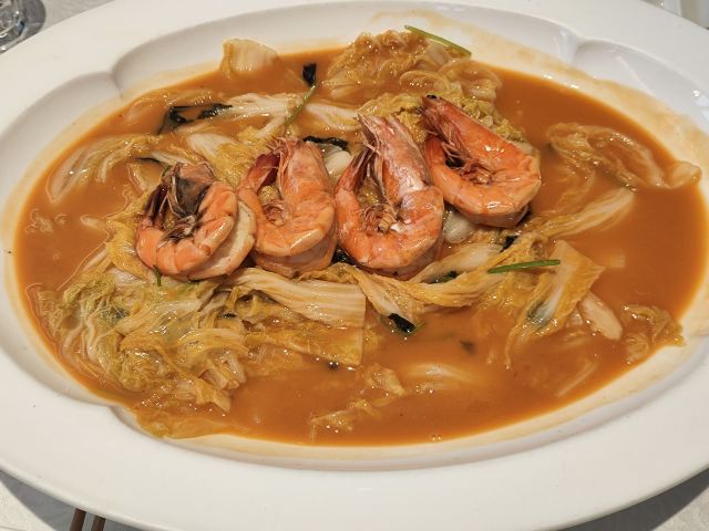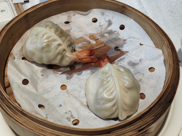桃子妖妖妖有钱真好 说来也怪,大连大大小小的馆子,不敢说吃遍了,各种类型各种价位,咱也算是都有涉猎,但唯有在老虎滩品海楼,让我突然有了这种感慨。 说实话,他家消费也没有多高,在这个地段人均也就150,随便吃口饭也花不了多少钱,我自己也不知道这个感觉是怎么就油然而生的,一点儿违和感都没有。 饭店档次没毛病,在渔人码头内有一栋独立的白色别墅,配上蓝天碧海,很出片,很大连。装修高贵大方,一楼的柱子上爬满了绿植,栏杆上装饰了红色花裙,天花板上悬挂着复古吊灯,楼梯拐角处是大连有轨电车模型,二楼主色调和外墙一样,都是素雅的白色,白色的餐盘上勾勒了蓝色的鱼群,墙上有大连地形图,处处都是大连特色元素。 一个人也吃不了太多,点了一个海捕大虾烧白菜、两只芸豆虾仁包子、两串羊肉串。 大虾鲜甜,白菜吸饱了大虾的汤汁,比虾还好吃。芸豆虾仁包子,虽然叫虾仁包子,但不是在包子里边包了虾仁那么简单,每只包子里都有一只大虾,虾尾露在外边,真材实料,造型好看又好吃。羊肉串虽然不能跟新疆的叫板,但在大饭店里边够看了,羊肉品质很不错。 到店就餐还可以参加抽奖,抽到了一只萌萌的黄色捏捏小奶龙,带回家给娃做伴手礼。 吃得非常舒服的一顿饭,外地游客到老虎滩来玩的,放心大胆来吃,不踩雷。 足以代表大连菜水平的一家店,推荐,会再来。