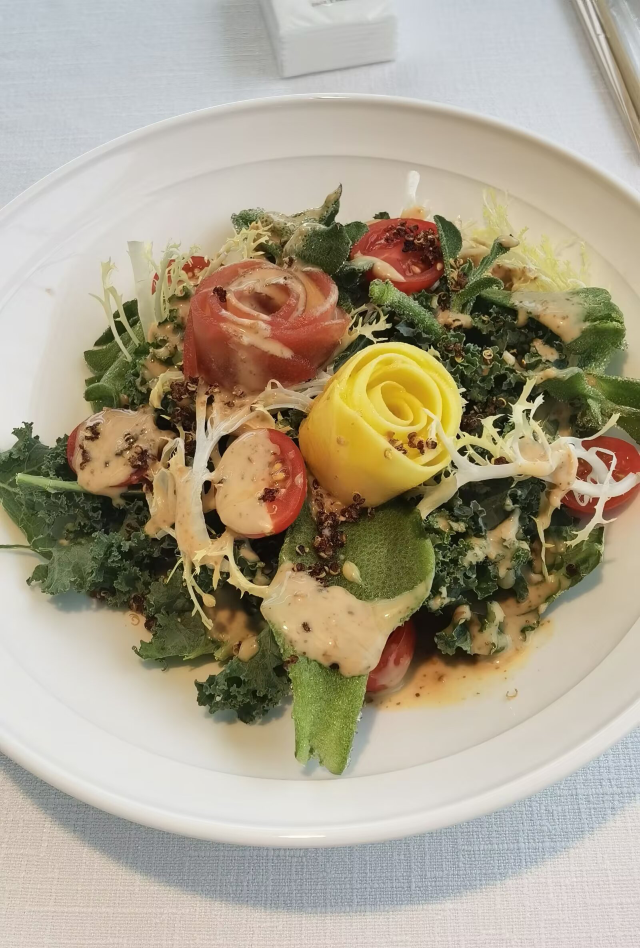 餐厅位于老虎滩渔人码头内,独栋的小洋楼非常漂亮,装修以蓝白色为主调,清新淡雅,营造出海洋的氛围。餐厅主打海鲜,种类丰富,而且食材新鲜。品海小蚆蛸,酱香味十足,口感柔韧。石锅鲍鱼肉质咸鲜有嚼劲儿,同时散发着淡淡的酒香气。大头菜爆海螺片酱汁浓郁,非常入味,海螺片火候也正好。