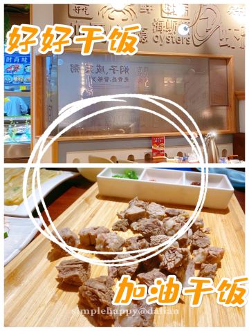 小虾锅贴,黑蒜小排,海南丢蚕香肉,老大连煎焖子,红酒煎猪肝,海蛎子焗饭,拌石缝海蛎子,蒜香黄花鱼,泉水牛肉,酸萝卜嫩鲈鱼,焖子