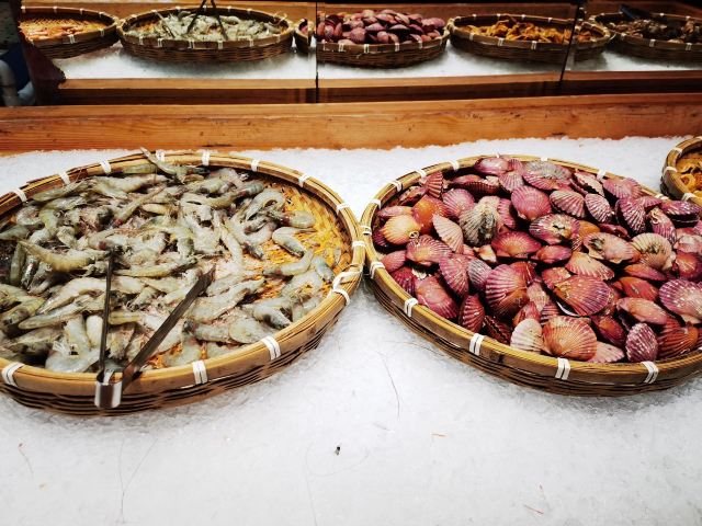 三文鱼,芝士烤虾,羊肉串,麻辣小龙虾,阿根廷红虾,鲍鱼