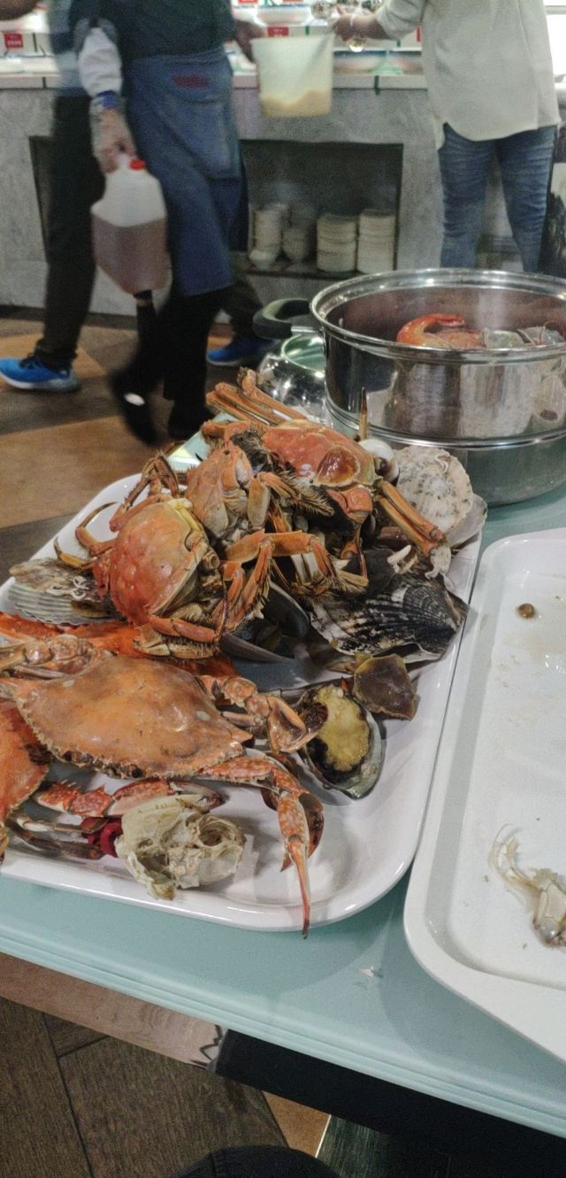 YoYo_8H6N3D3X【口味】吃的挺好 海鲜挺丰富的 别的吃的也挺多就是没有主食 炒饭 面没发现有 不限时挺好 主要去就是干螃蟹 吃的溜饱 海鲜新鲜 回家没跑肚 【环境】不错 门口小姐姐非常礼貌 环境挺好 【服务】发生了个小插曲吃一吃把电磁炉吃冒烟了这给我吓得 一股白烟和胶皮味就出来了 刚开始闻到味道了 找服务员告诉我有水没事 我说你闻一闻 他告诉我感冒闻不着😡 前脚刚走后脚就冒烟了 性质全无 让我满意的是他家一个经理应该是 结完账我都走了 特意追出来给我又赔礼又道歉的 给这帅哥经理点赞 总体来说他家挺好值得去 可能就是有的服务员不咋地 但是还是有礼貌 热情的多 下回去大连还去