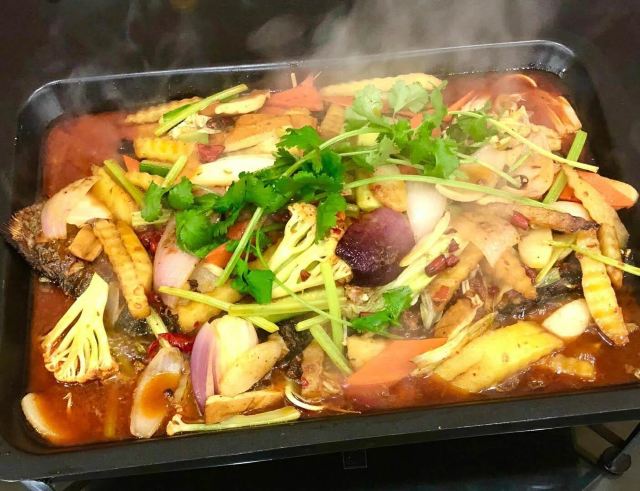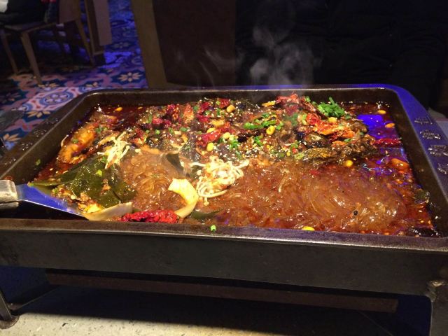 烤鱼做的很地道,味道偏辣,还有牛蛙和海鲜锅也都很不错,烧烤炒菜也有。