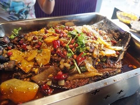 烤鱼绝对经典,推荐微辣口味,很好吃,还有各种各样的小菜。