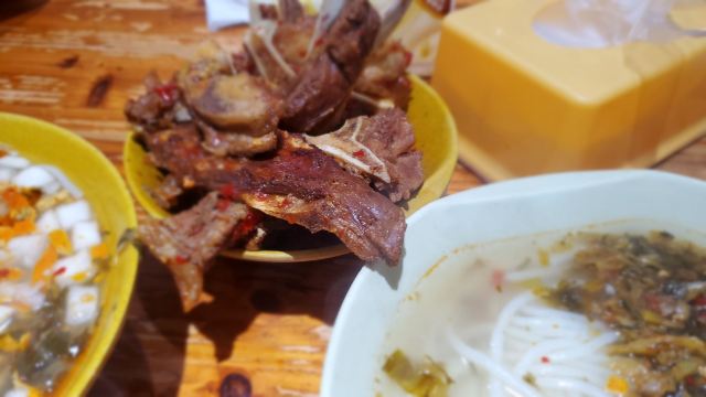 作为一家粉面店,面积不算小,挺大的,牛骨粉就是一份牛骨带一份粉,比较辣,吃起来很过瘾