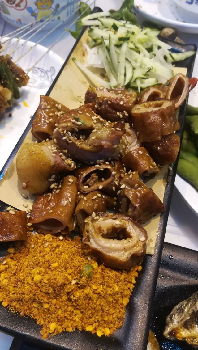 季季红串店真招人啊,夜市刚刚开始,人就快坐满了。手机自助下单,简单明了,上菜真的很快,味道不错,就是烤茄子太咸了,烤脑花一般了。