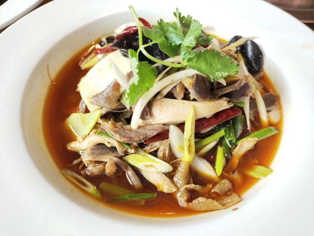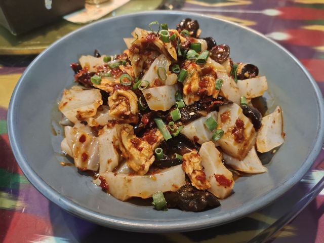 菜品很有特色,味道很棒,据介绍烤全羊是没有结婚的羊娃子肉非常鲜嫩,沙棘土豆炖牛肉很香,烤鱼刺很少味道很好,辣子鸡里面居然是香梨跟特别很入味不是很辣,环境干净卫生装修很有风格
