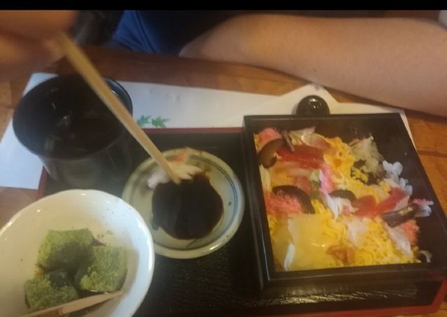 Mishima Tei Honten焯水荧光乌贼配吉野葛粉|两种不在我喜好上的食材碰在一起了。 番茄配蛋黄醋+调味味噌分葱缀荞麦|番茄是真甜,大概是至今吃过的最甜的番茄。 小拌菜|十六岛海苔、鲷鱼子、蜂斗菜 软炊饭三味|尚留水分的百米,配上调味金针菇,鳕鱼子,小银鱼。米饭配辣子的既视感,下饭。 金目鲷芹菜炊饭|以为一定是爆香的一碗饭,结果没有想象中好吃,略失望。 黑糖樱饼+抹茶|樱花季节和菓子,忒甜,没有丢掉日本人对和菓子必须甜的坚持,我不可。 橘汁|薄皮肉甜的一种橘子せとか的果汁。好喝。