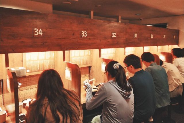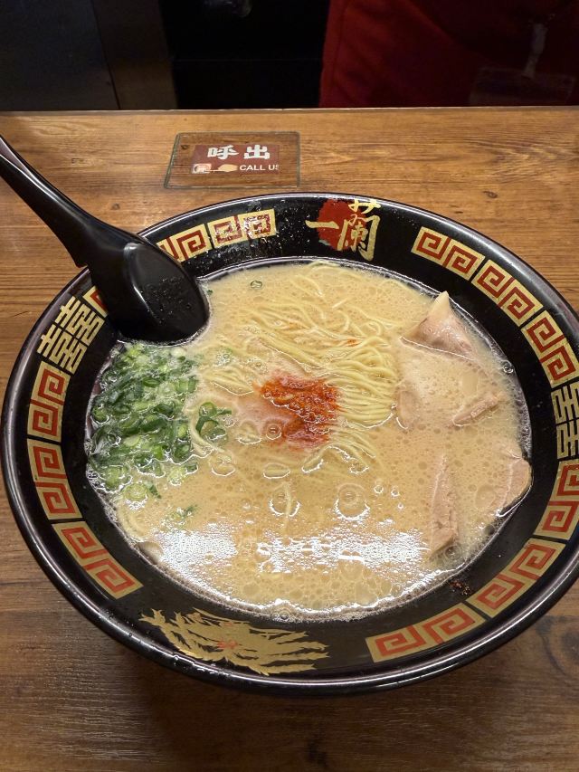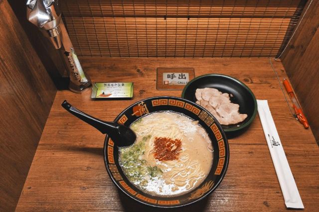 一兰起源于九州,是博多拉面的一种,也是当地豚骨白汤拉面的代表,这里拥有“一个人也可以吃拉面”和“专心吃面”的拉面文化,与众不同的小隔间设计,私密性很好。