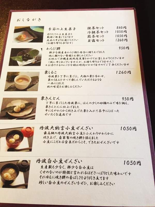 黑糖蕨饼,栗果子,上生菓子,丹波大纳言年糕小豆汤,热抹茶羹配甜豆,和果子配冰抹茶饮,抹茶甜品, 日式点心,日式点心