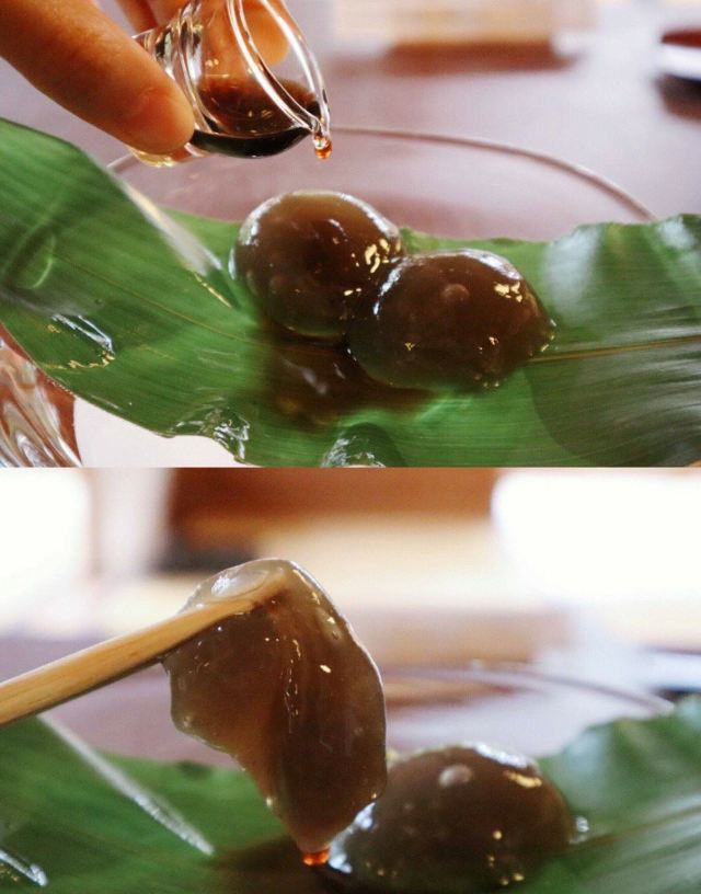 从房间席位可欣赏享受悠闲舒适京都风的日式庭园造景及品尝店家用心制作的销魂美味黑糖蕨饼。 是连当地都非常受欢迎、被挂保证的有名蕨饼店。店家一接到订货后、使用蕨粉制作成甜度适当、吃起来软弹的蕨饼。