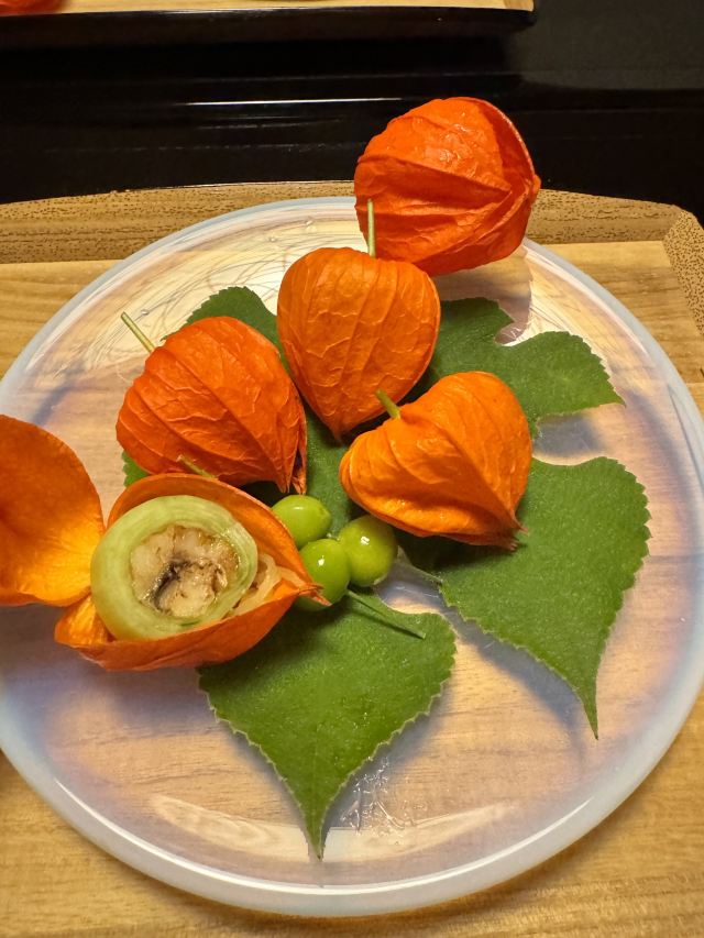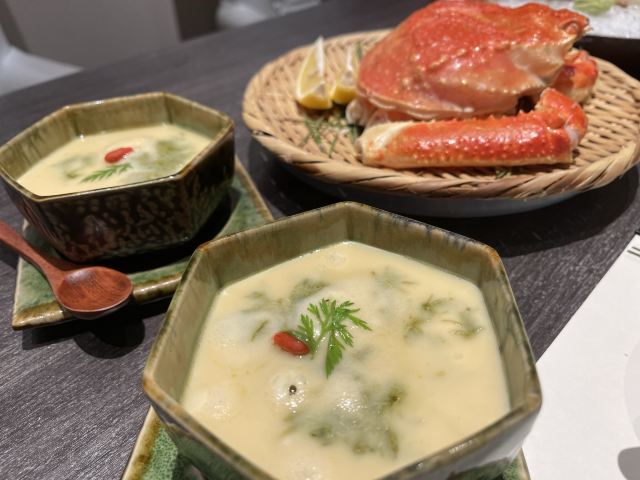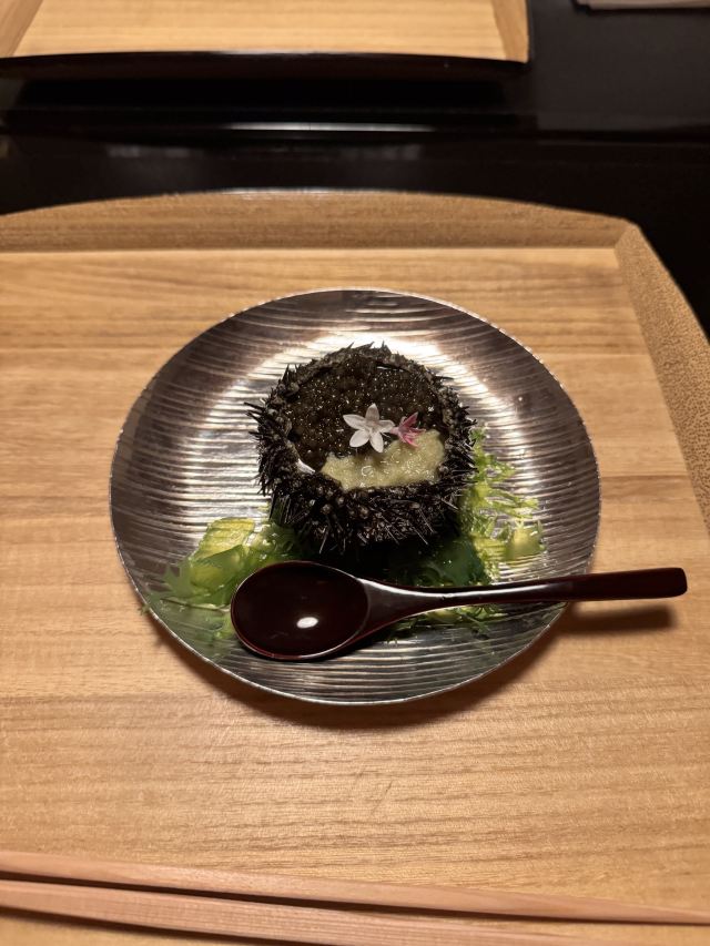 海胆鲍鱼,海胆豆腐,玉米冰淇淋,鱼翅甲鱼汤,无花果西京煮,不甜的甜鱼,抹茶甜品
