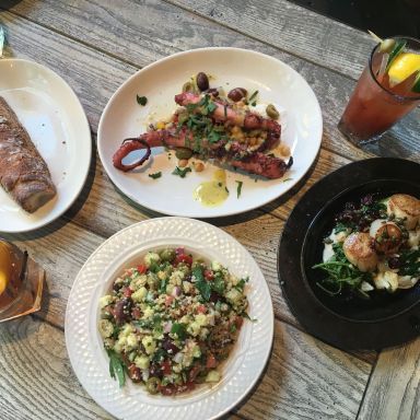 lamb burger,Octopus Salad,Octupus,Spicy Lamb Sausage Dumplings,Greek Yogurt With Chia,Flax,Pumpkin And Sunflower Seeds,sangria,Chocolate cake,branzino,烤羊小腿,Meatballs