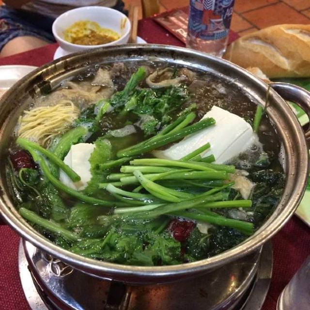 晚上在胡志明吃一顿围炉火锅,真的是爆赞啊。越南的羊肉火锅连汤都很好喝, 羊肉一块一块热腾腾的吃下肚好舒服!羊肉蒸紫苏也很好味道,咖喱锅也不错。