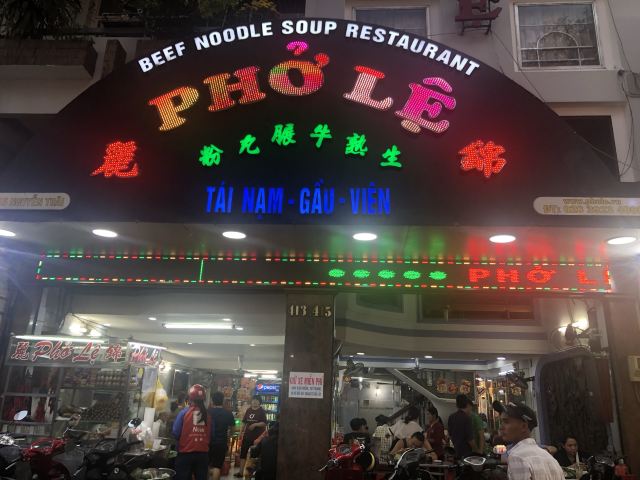 Pho LePhở Lệ是胡志明市著名的河粉餐厅,从早到晚都有很多客人,除了本地人也有许多慕名而来的游客,所以每天都高堂满座的,热闹滚滚。 Pho Le的河粉不软烂,吃起来QQ的,汤头鲜甜好喝,再加上彭湃的生牛肉,熟牛肉或是牛肉丸。真是超好吃。