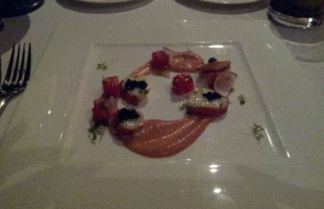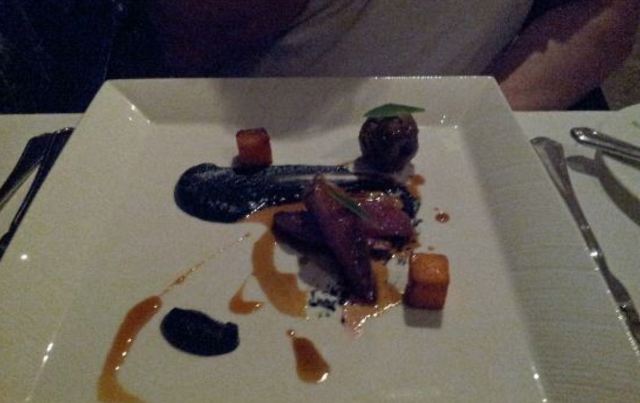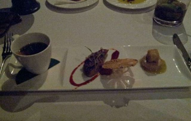 慢烤鸭胸,澳洲牛排,Scallop Tartere,Rice Husk Smoked Escolar Fish Carpaccio,鸭肉鸭肝secret menu,Seasonal Mangosteen Sorbet Peanut Nougatine,餐前面包,鳟鱼,酸橘汁腌鱼,蛋黄鱼仔堡,烤乳猪,青瓜龙虾卷,酒心巧克力棒,龙虾