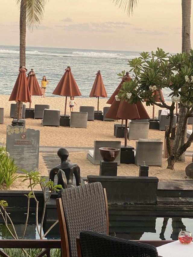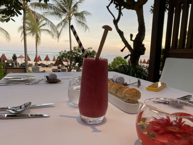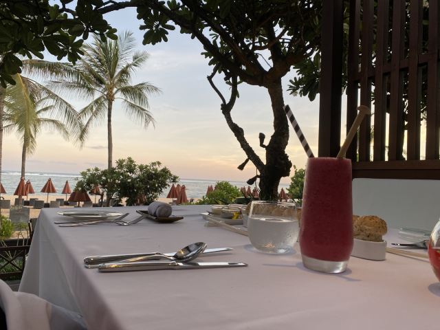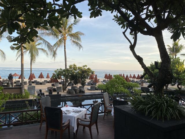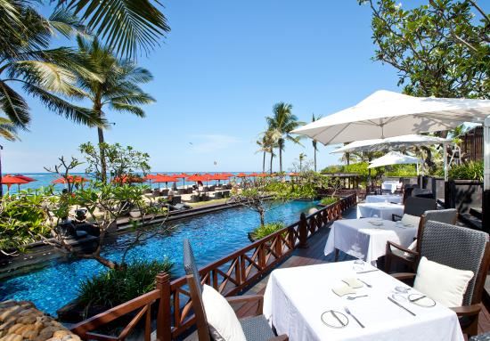 餐厅以典型的印尼手工制品为特色,装修以白色木材为主,打造简洁舒适的环境。餐厅主要提供西餐和美酒,菜品创意十足,出品精致美味。食客坐在露天位不仅可以欣赏到酒店内的花园景致,还可以远眺印度洋欣赏海天一色的美景,夕阳西下时格外有情调。
