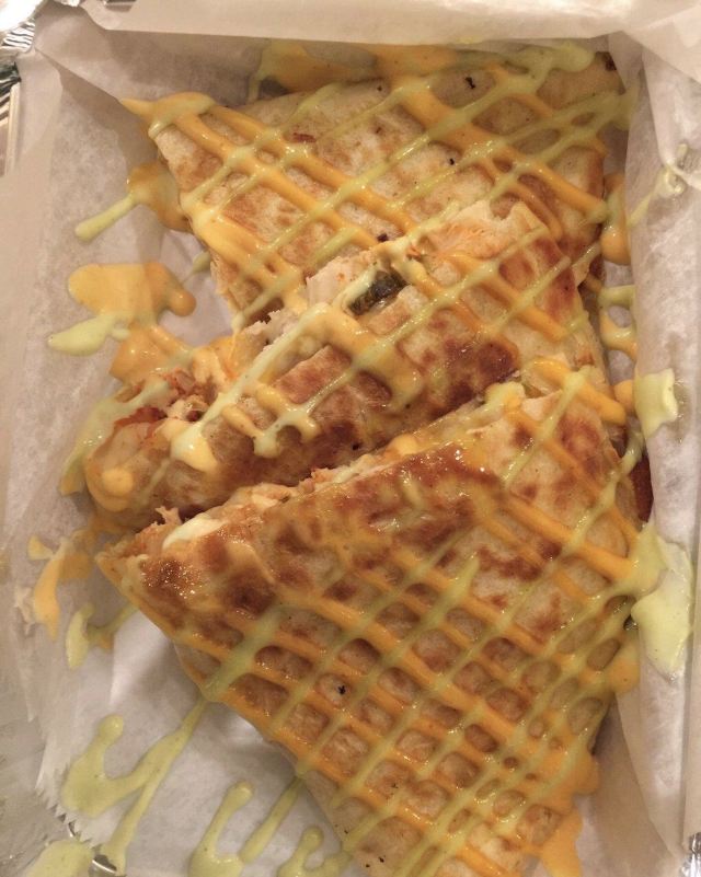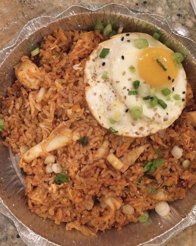 Kimchi Fritas泡菜奶酪焗薯条盖蛋,Quesadilla鸡肉奶酪烤玉米饼,Bulgogi Taco韩式烤肉墨西哥卷饼,Kalbi Short Rib Taco 牛小排墨西哥卷饼,Kimchi Fried Rice,spicy pork