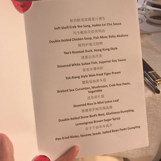 相较以往喜气洋洋的中国红元素,餐厅内部改以深沉的暗灰色系为主调色,桃花图案点缀周围贯穿主题,让人有种闯入夜间桃花林的错觉。在主用餐区内抬头看,云朵飘散的“天空“,更在灯光的衬托下,仿如置身在璀璨的星空底下,营造磅礡的气势,让“桃“摇身成为更摩登时尚的中餐厅。 主厨是黄廉祐,粤菜基本上走传统路线,然后在传统中求创新,例如传统的北京烤填鸭,可额外添加鹅肝、松露或杏鲍菇。 最令人难忘的是,餐厅从亚洲各地收集并展示上百个精心挑选的华丽中国茶壶,让客人可以享受、欣赏和购买。