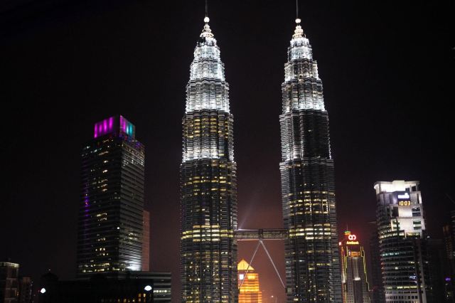 孔垂信001这个景点最好的地方就是可以观看双子塔美丽的夜景,双子塔夜景真的很壮观,看起来就像两座城堡一样。