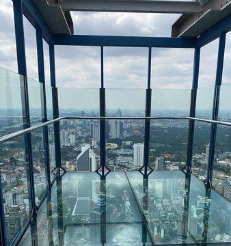 SkyBar站在一个300米高的玻璃盒子里,绝对是一次令人惊叹的经历。 这是一个多么激动人心的体验啊! 到这边体验一番的门票每张约100林吉特(合20英镑)。 游人是有90秒的时间在天空包厢里体验一番的,那里还有专业的摄影师。 拍摄照片是大约需要220林吉特的,与之相比,门票是便宜很多的,但是拍出来的照片真的是超级棒的。 你还可以得到一个下载照片的链接。 这里是有两个天空盒子供游人体验的,其中一个是可以让游人看到双子塔景色的,并且两个都是很棒的。 我们去的时候,排队的人还不算多,但那是个阴天。 尽管如此,我们还是很享受的!